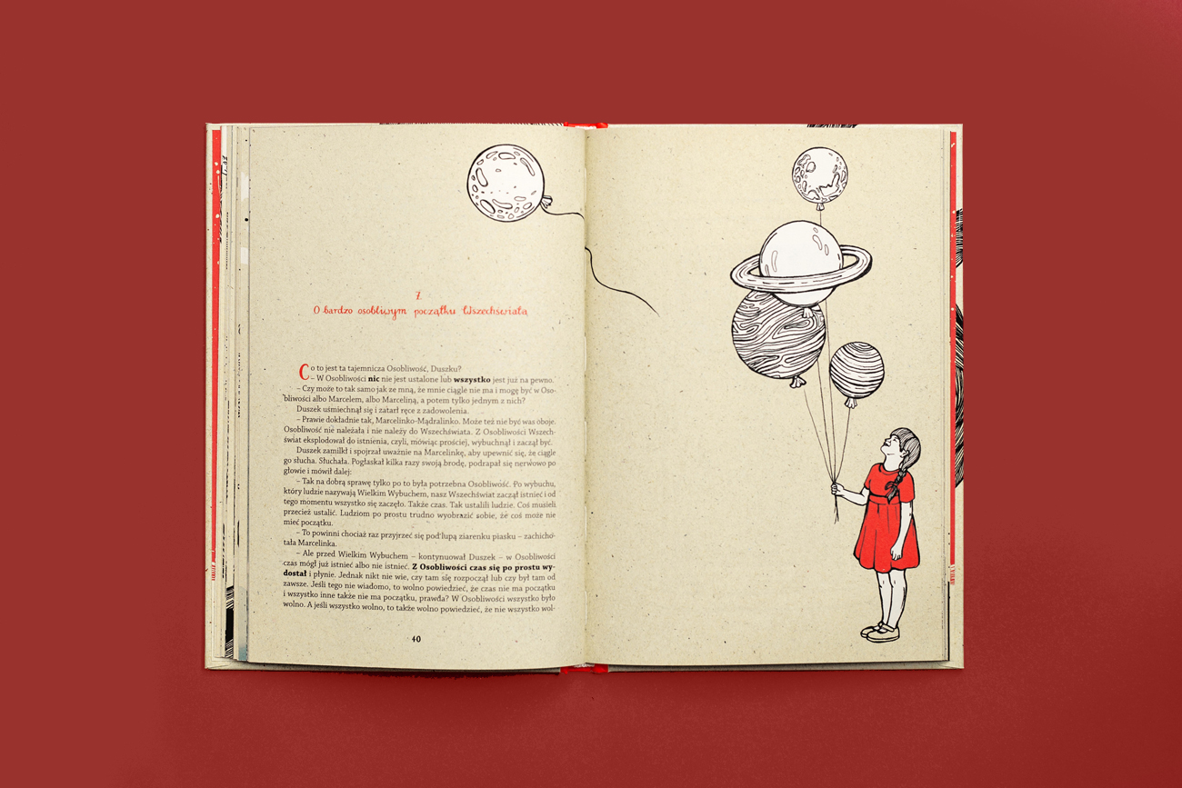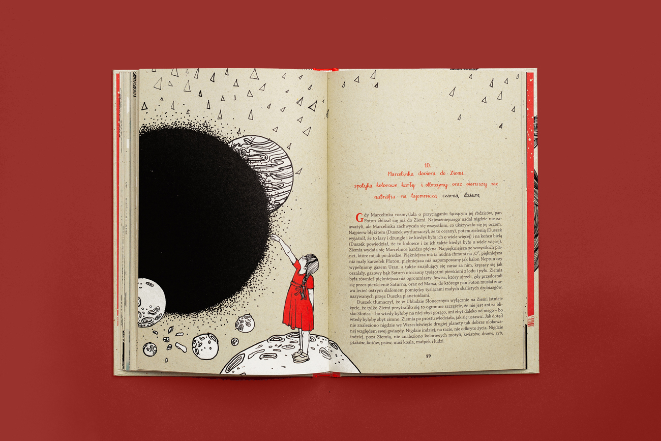 Książka opowiada o przygodach Marcelinki, która podróżuje po wszechświecie. Ciekawość prowadzi do odkrywania niezwykłych tajemnic Kosmosu. Czytelnik wyrusza z dziewcyzynką w pasjonującą podróż, pełną emocji i niespodzianek. Każdy rozdział to nowe wyzwanie oraz fascynujące odkrycia, które zachęcają do zadawania pytań i poszukiwania odpowiedzi.