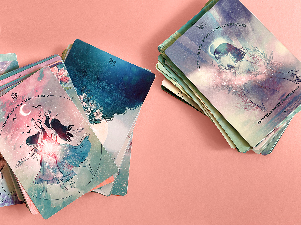 Projekt kart Głos intuicji składających się z 44 kart pomagających pogłębić połączenie z intuicją. Każda karta zawiera unikalną autorską ilustrację.